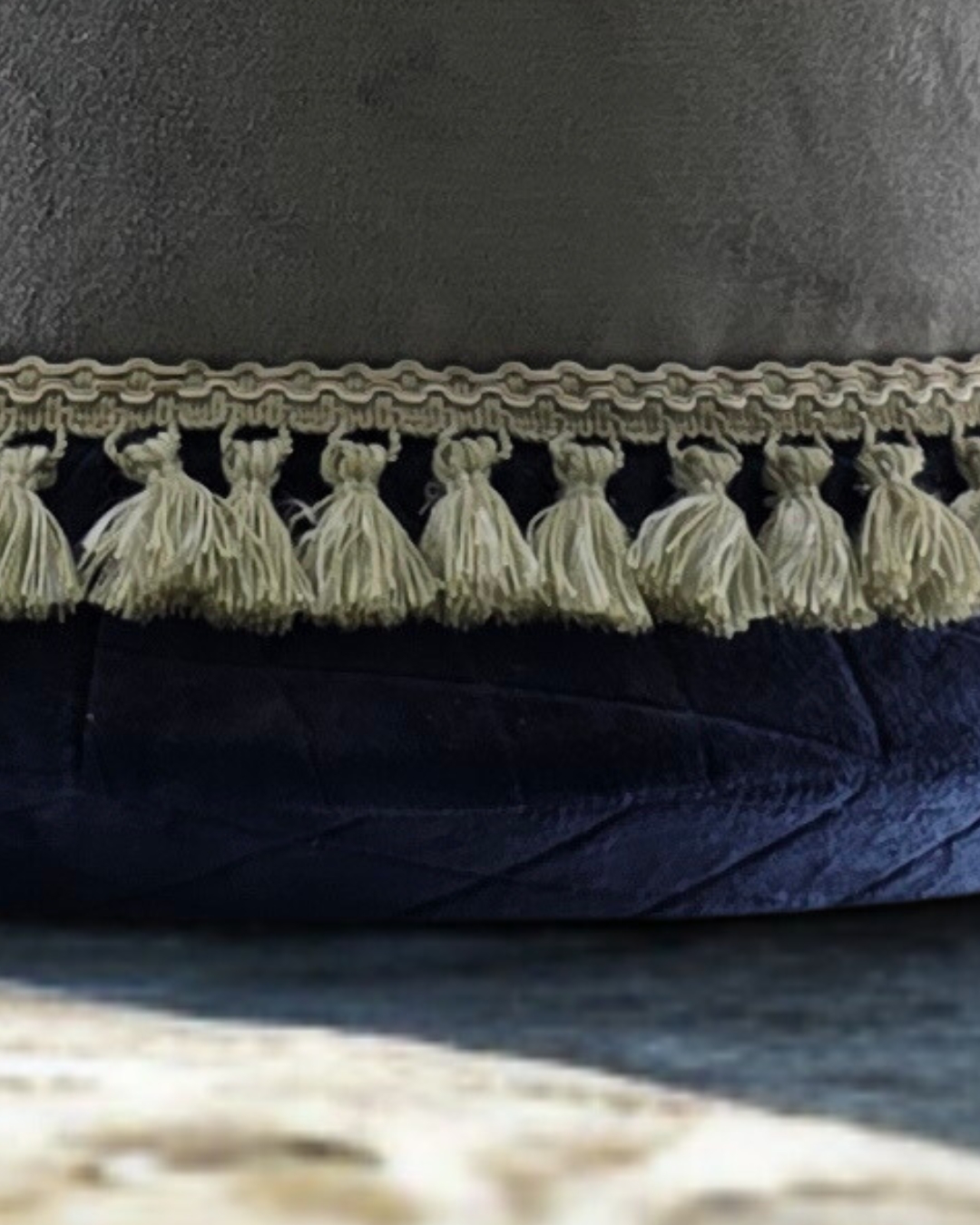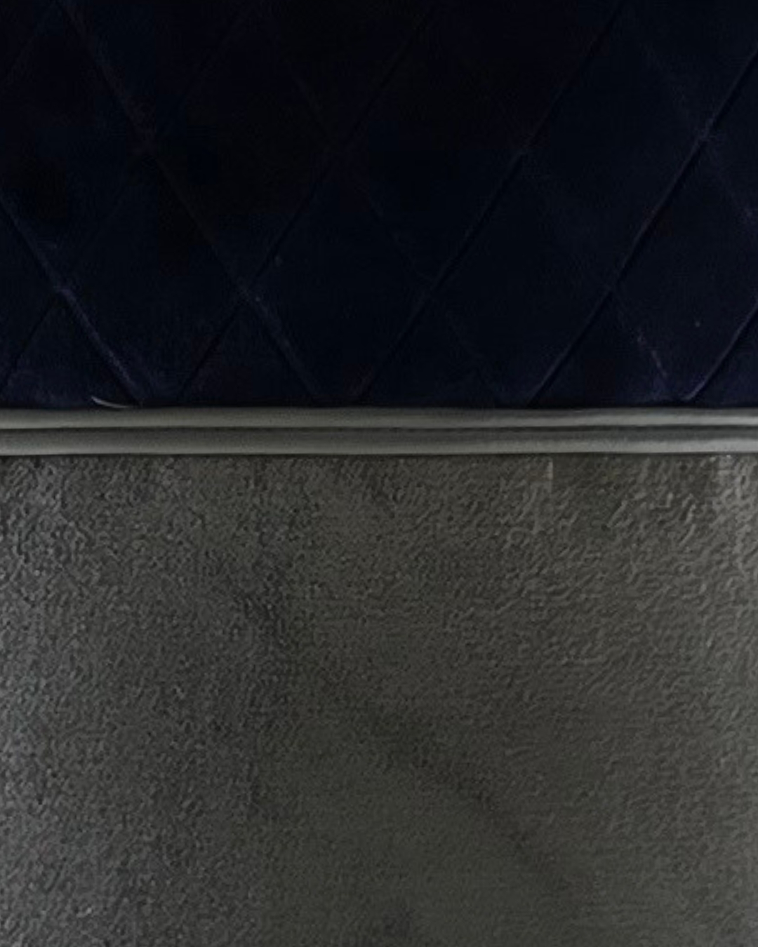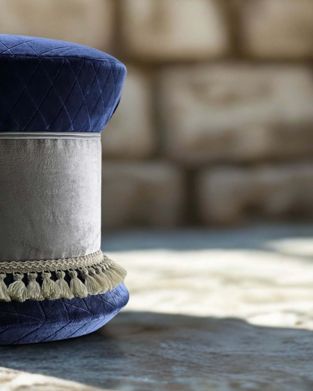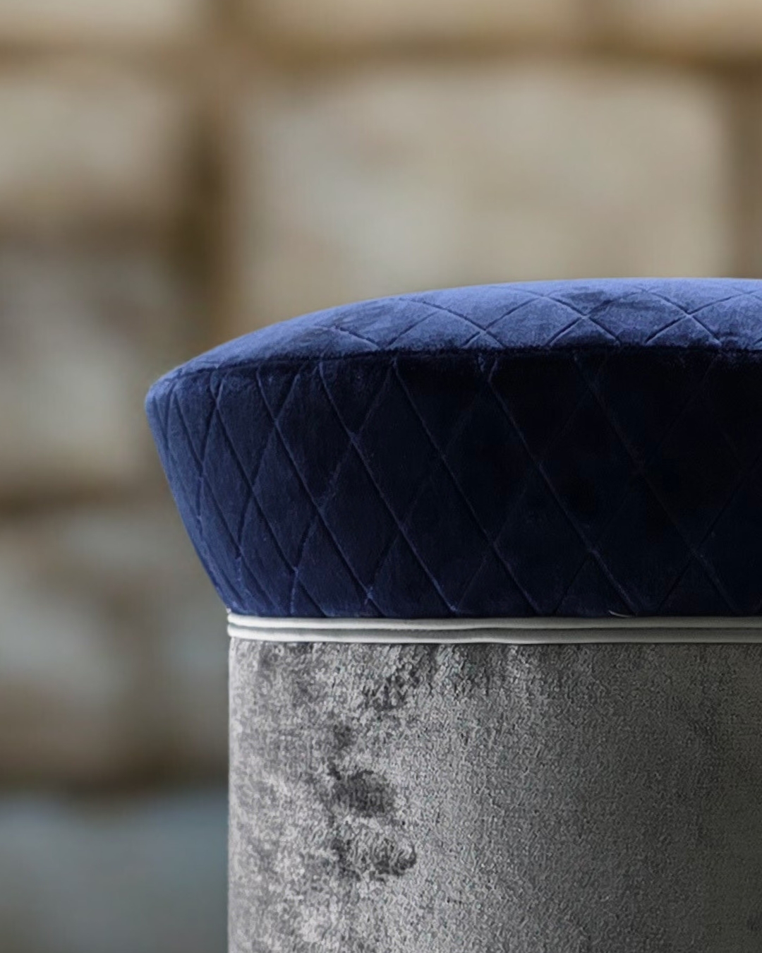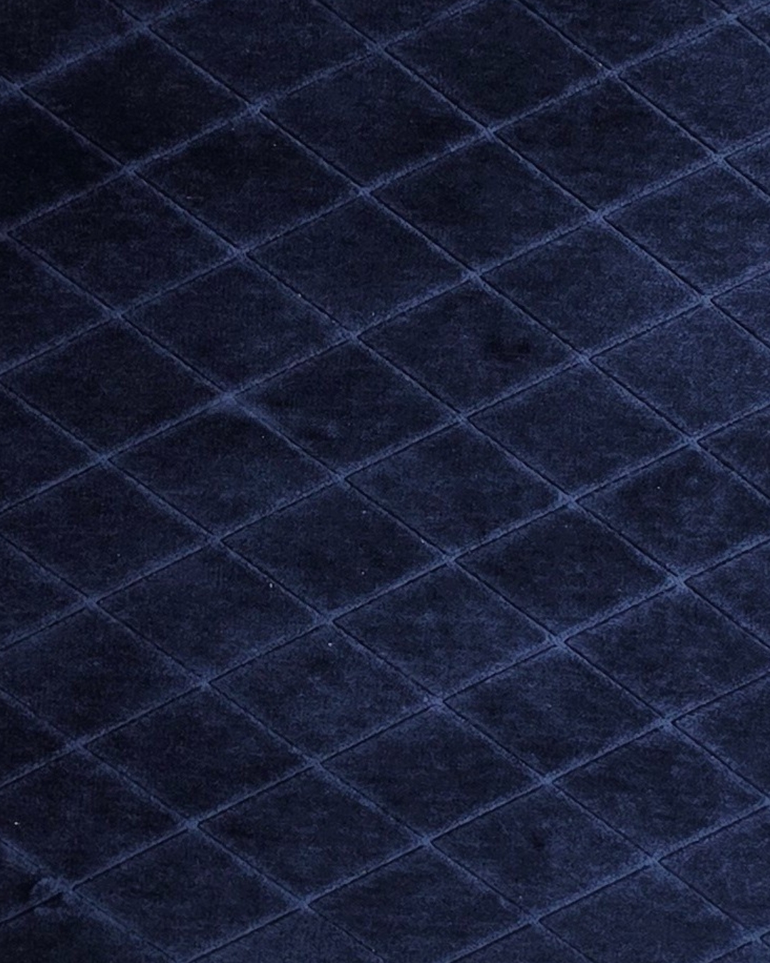 con terciopelo con diseño de rombos azul zafiro combinado con otro plata
