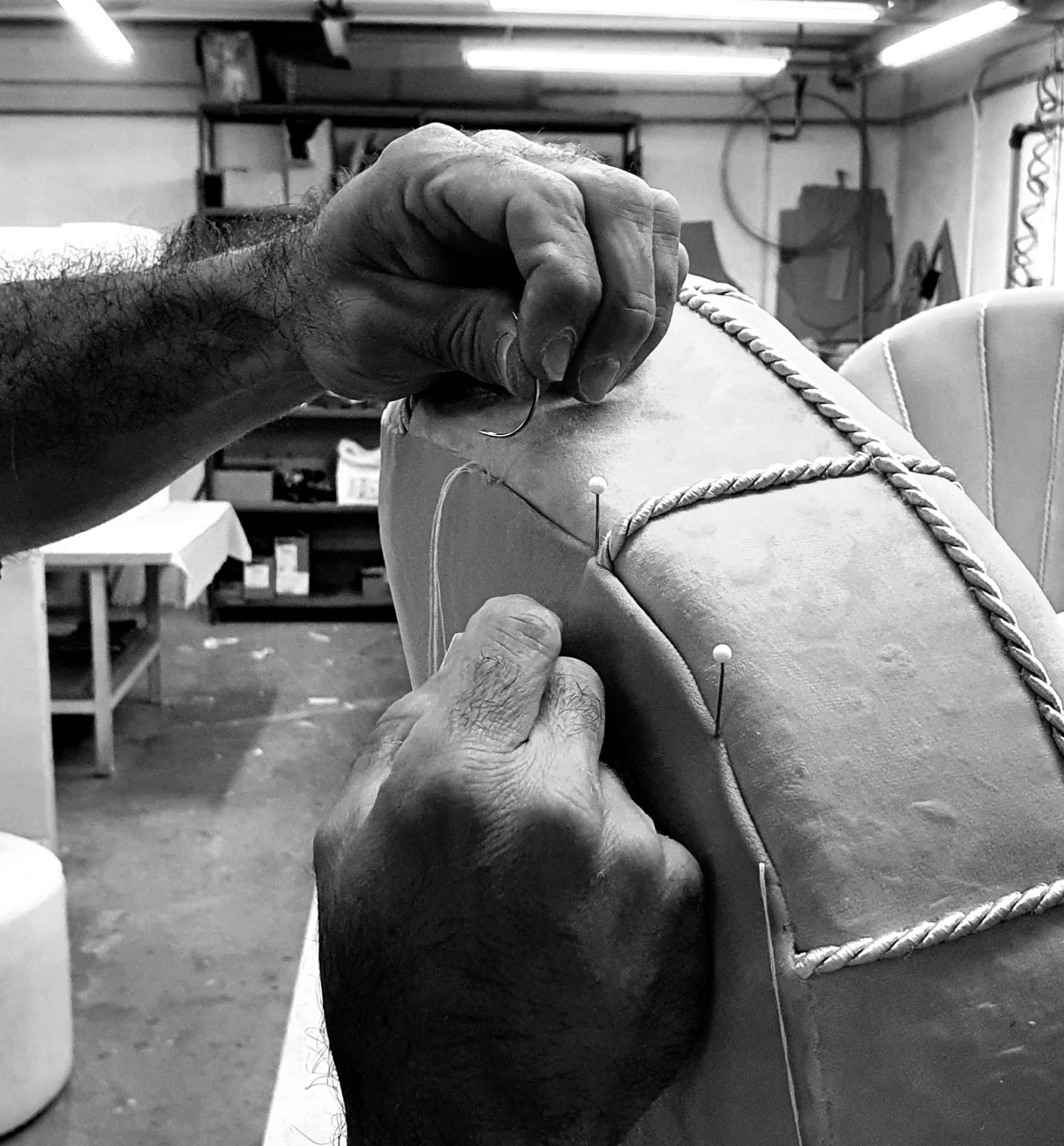 Nos dedicamos a la haute tapisserie creando, bajo petición de nuestros clientes, piezas exclusivas a medida de manera artesanal con materiales de alta calidad prestando una atención extrema al detalle. Ofrecemos asesoramiento y servicio personalizado a empresas y particulares para desarrollar piezas únicas, realizar producciones en serie de manera manual, confeccionar cortinas o estores, retapizar muebles y restaurar mobiliario tapizado como sofás, butacas, sillas, camas, cabeceros o espejos, entre otros.